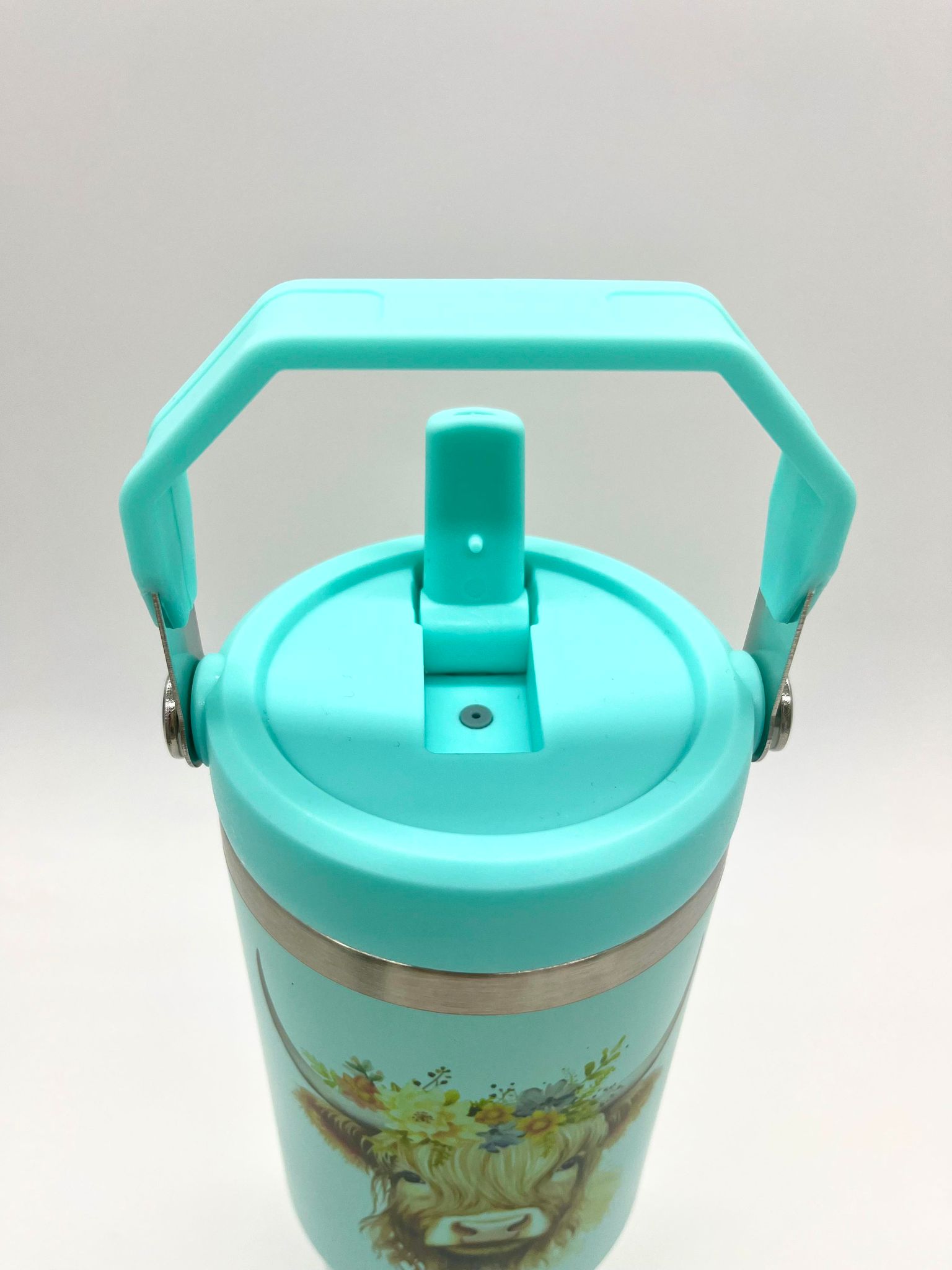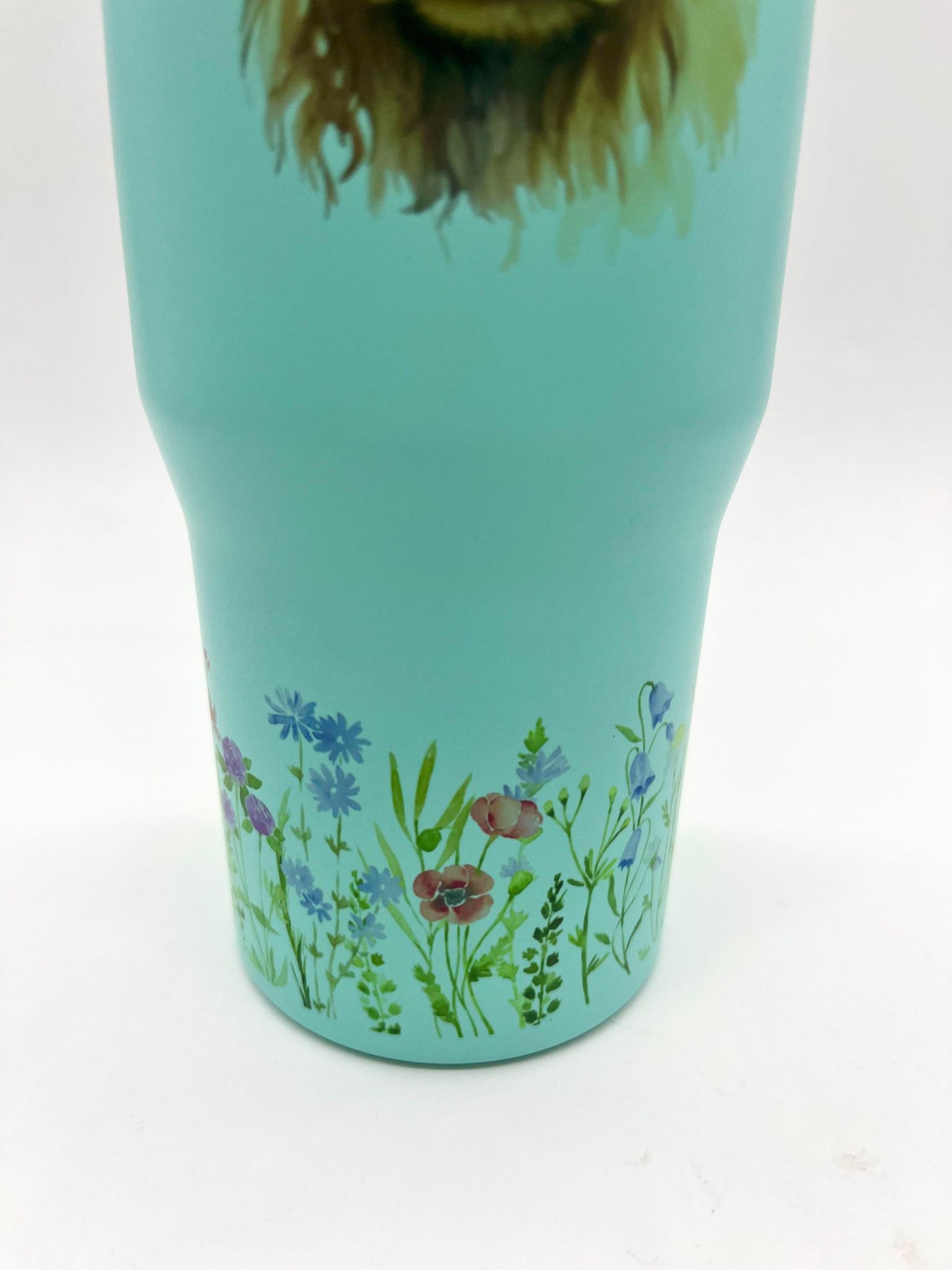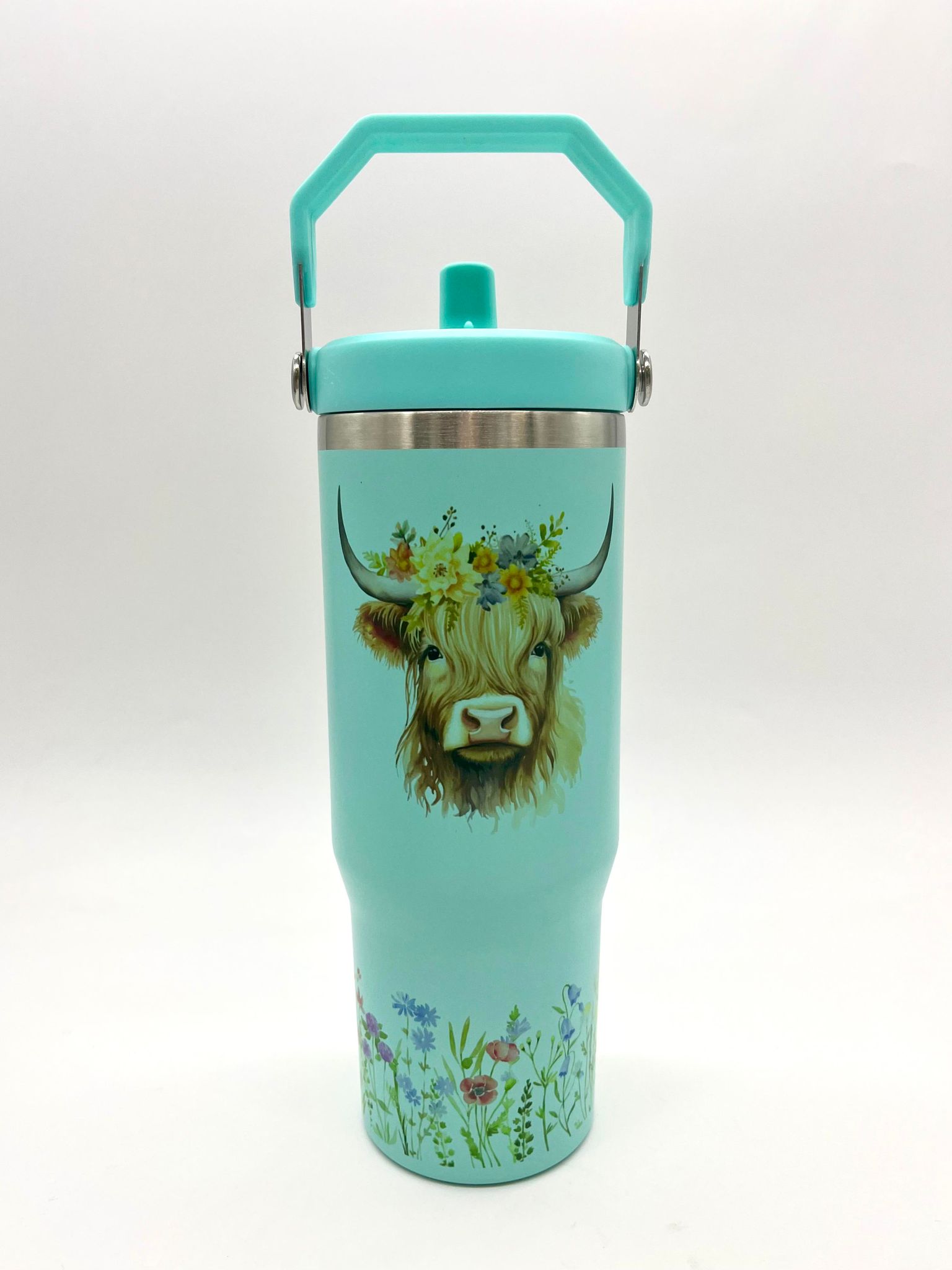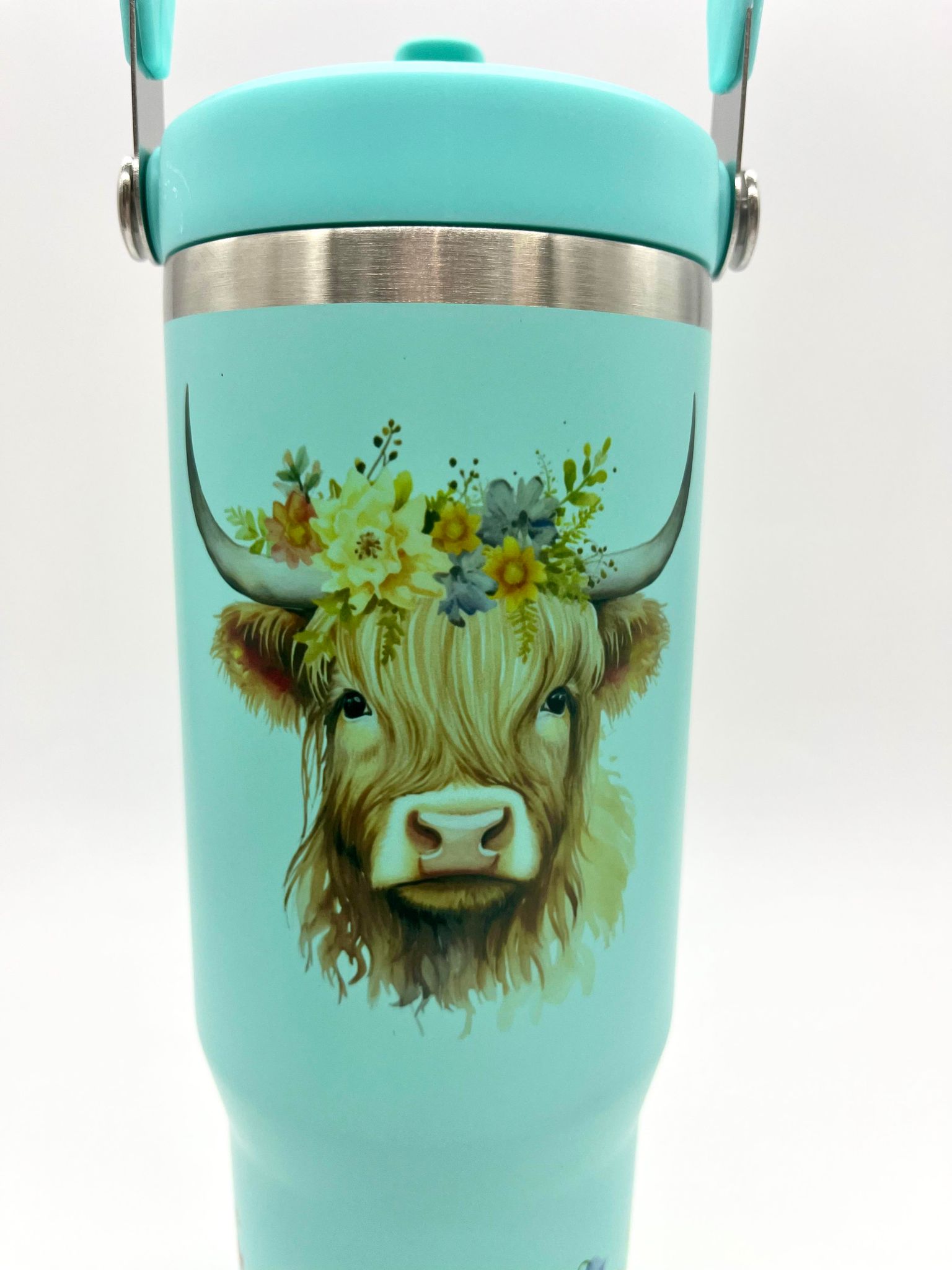 Style : 30oz tumbler with straw and handle personalised with a highland cow design