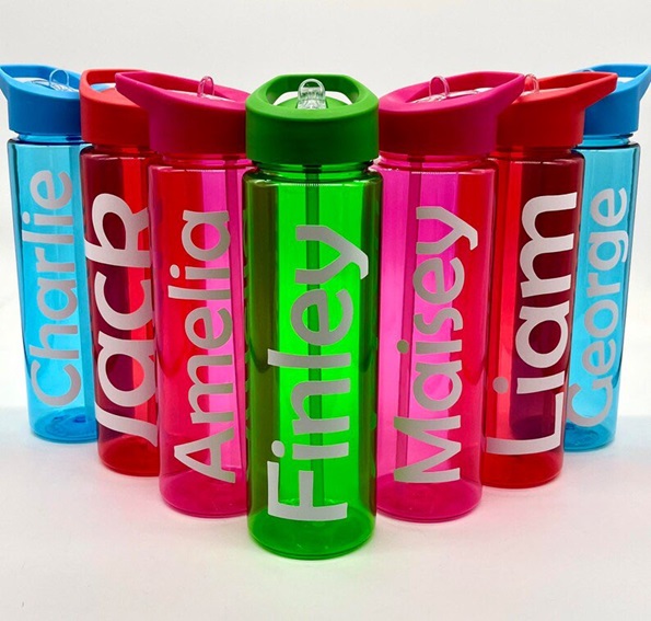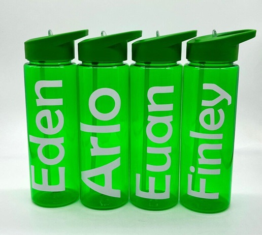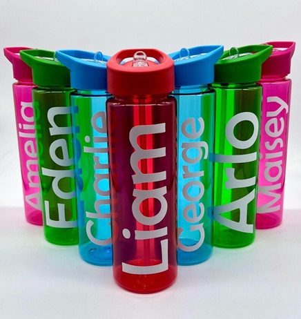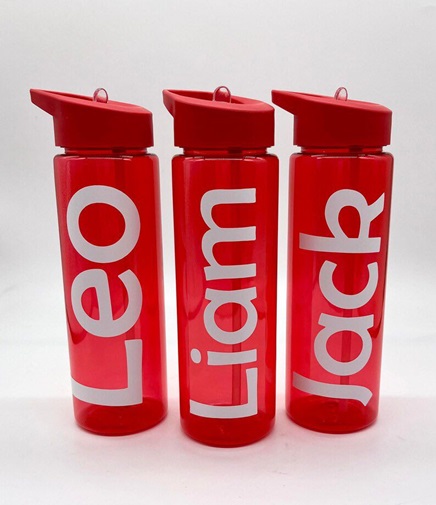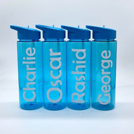 Personalised Water bottle with a simple easy to read, yet attractive and stylish font.