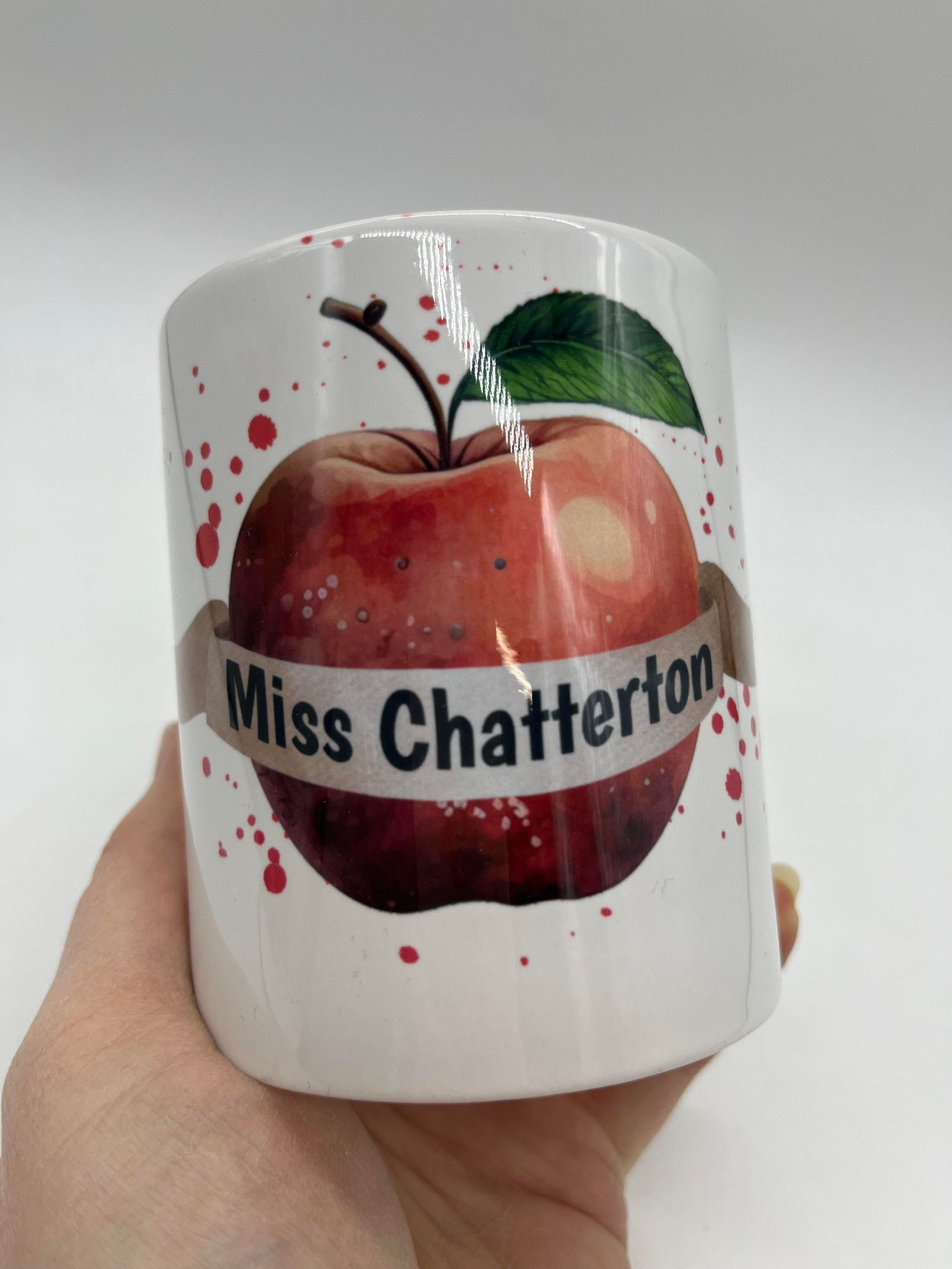 Style :Ceramic pencil pot design with an apple and personalised with a teachers name