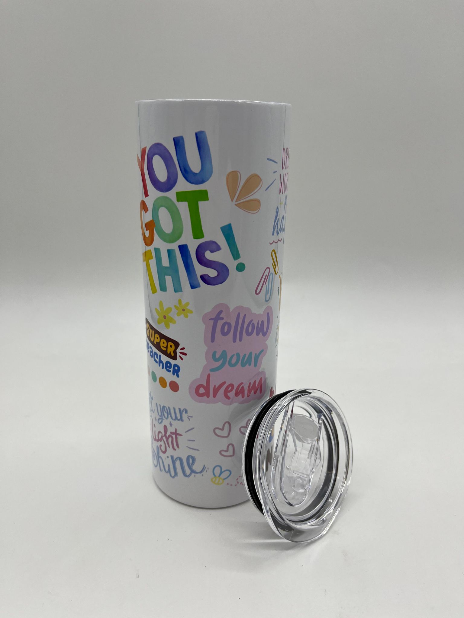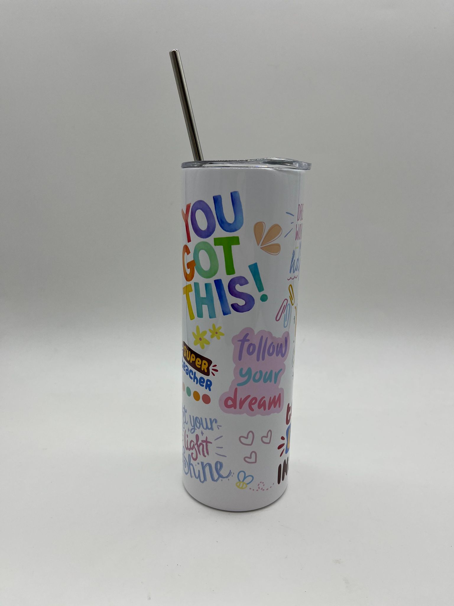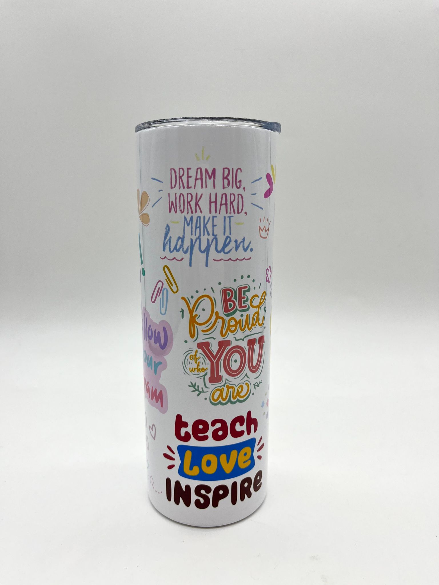 Teachers quotes metal tumbler.
